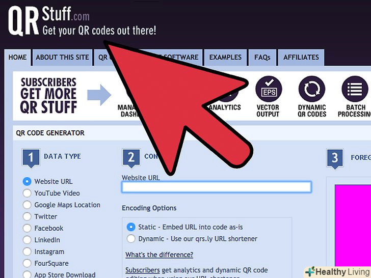 Створіть, кастомізуйте і збережіть ваш код. в Інтернеті є багато сервісів, які допомагають створити QR-код. Використовуючи генератори QR-кодів, ви можете закодувати будь-яку текстову інформацію.- Можна закодувати посилання на сайт, ваш профіль в facebook або іншу контактну інформацію.