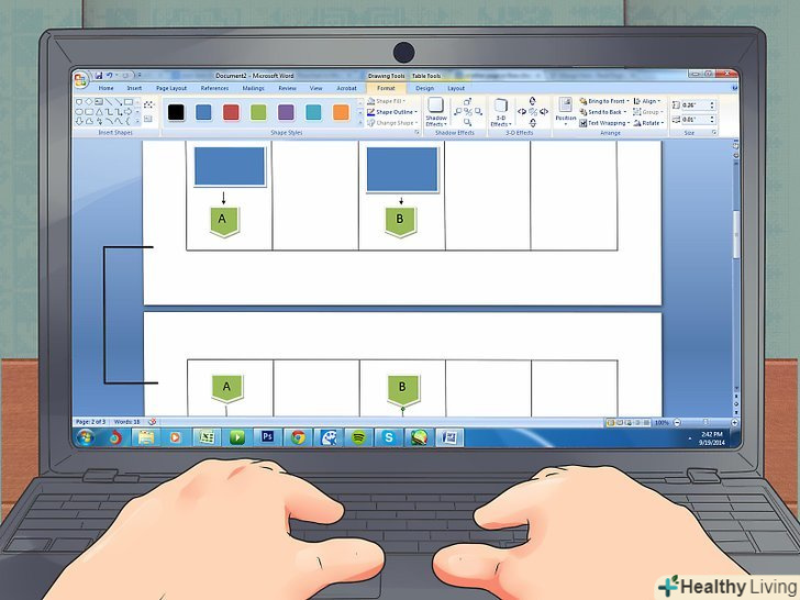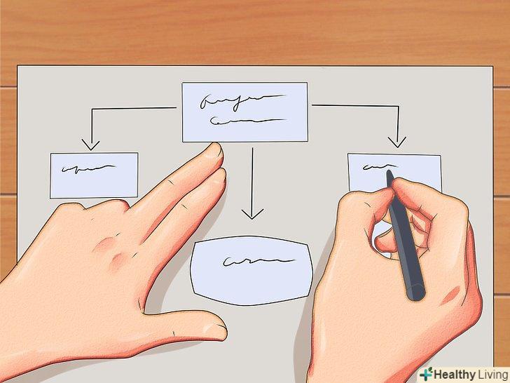 Організуйте структурну схему зліва направо або зверху вниз. коли робите таку схему, то намалюйте рамку для кожного завдання процесу і з'єднайте їх стрілками, щоб показати послідовність виконання потрібних завдань. Почніть зліва або зверху сторінки, як би ви це робили, якби писали. Якщо ви розташуєте кроки по порядку, то відразу легше буде зрозуміти, які з них виконувати.- Якщо ви працюєте з мовою, яка відрізняється напрямком письма від російської, то використовуйте потрібний напрямок. Наприклад, структурна схема, складена арабською, йде справа наліво.