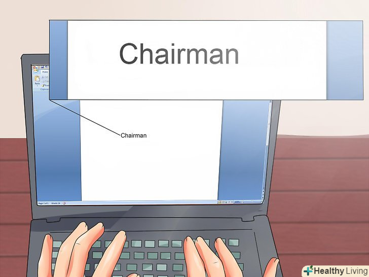 Називайте людей за їхньою посадою, а не за назвою. Документ може протриматися довше, ніж індивідуум. Не пишіть:"надіслати протокол зборів Каті". Напишіть: "надіслати протокол зборів голові." [1] якщо ви вважаєте, що ім'я обов'язково потрібно, щоб читають документ знали, з ким зв'язатися, напишіть як ім'я, так і посаду.