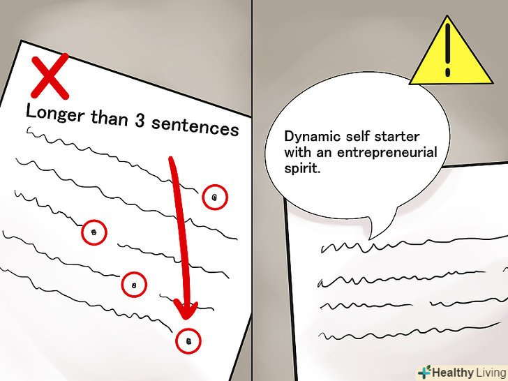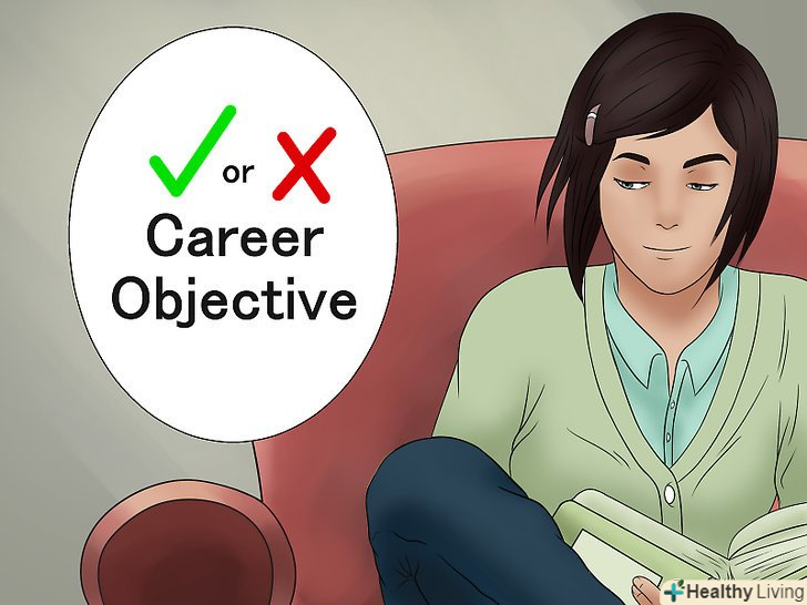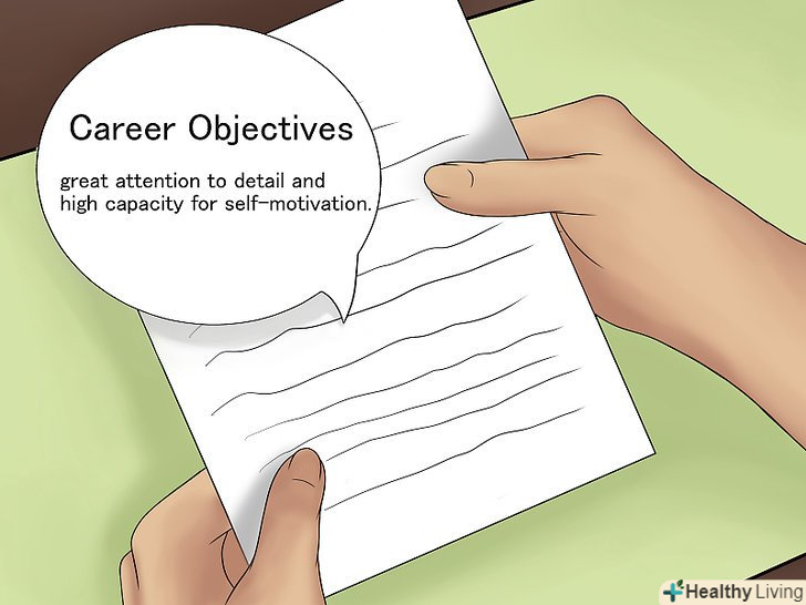 - Не перевантажуйте свою кар'єрну мету гучними фразами. Це ускладнює сприйняття читача. Постарайтеся справити враження, але не навантажуйте кожне речення 3-4 довгими словами. [8]