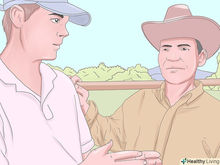 Поговоріть з досвідченими фермерами. постарайтеся знайти ферми, близькі за характером до того, що ви хочете. Розпитайте в окрузі-можливо, ви могли б відвідати одну з таких ферм. Проведіть дослідження в мережі Інтернет, можливо, у вашій місцевості планується проведення тематичного ярмарку місцевих фермерських господарств. Відвідайте обов'язково подібний захід-там ви зможете знайти серйозних і активних виробників, з якими вам буде корисно поспілкуватися. [1]- Задайте їм різні питання про те, що вони роблять (що включає в себе їх процес), як змінювалася з часом їх ферма, який розвиток вони припускають у своєму секторі, і запитайте дозволу нанести візит до них на ферму. Фермери, як правило, доброзичливі, скромні і привітні люди, хоча деякі можуть бути більш стриманими, ніж інші.