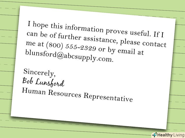 Підпишіть і відправте. підпишіть лист і додайте будь-які гербові печатки, які використовуються в компанії.- Для відправки або віддайте лист співробітнику, або відправте його прямо в організацію, яка подала запит.