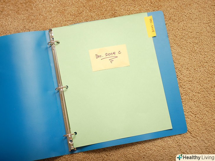 Зробіть закладку. відміряйте їх так, щоб останній роздільник лежав в безпосередній близькості від нижнього краю листа. Ви можете купити великі Папірці для вкладок, використовуючи їх липку частину, або вирізати маленькі шматочки паперу і приклеїти їх до правої сторони дільника.