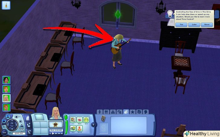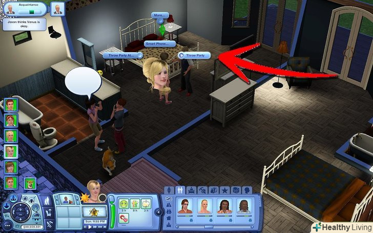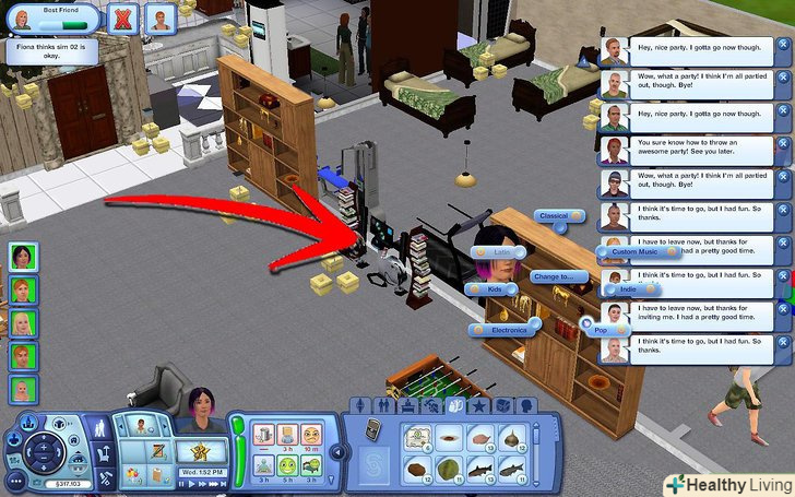 Ви також можете попросити Сіма зі своєї родини зіграти на інструменті.коли прийдуть гості, нехай він або вона заграють щось. Більшість симов люблять, коли поруч грає музика.- Якщо у вашій родині немає нікого, хто був би знайомий з музикою, тоді купіть стереосистему. Це забезпечить вас музикою, під яку ваші гості зможуть танцювати і веселитися!