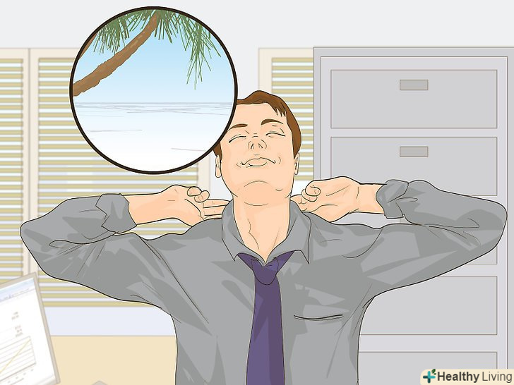 Створіть позитивний образ в голові. відведіть місце в своєму розумі, де ви зможете морально відпочивати під час стресу. Закрийте очі і уявіть собі заспокійливу сцену. Намагайтеся задіяти всі свої органи чуття, щоб уявити, які відчуття, запахи, смаки та інше викликає це місце. [3]- Припустимо, ви любите походи. Якщо ви перевтомитеся, закрийте очі і уявіть, що перебуваєте в наметі в лісі. Пару хвилин подумайте, які відчуття, звуки, смаки і запахи викликає природа. Це повинно вас заспокоїти.