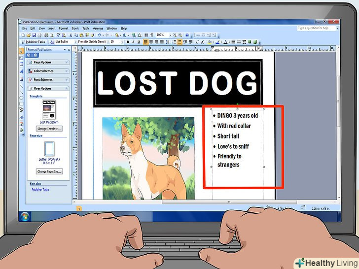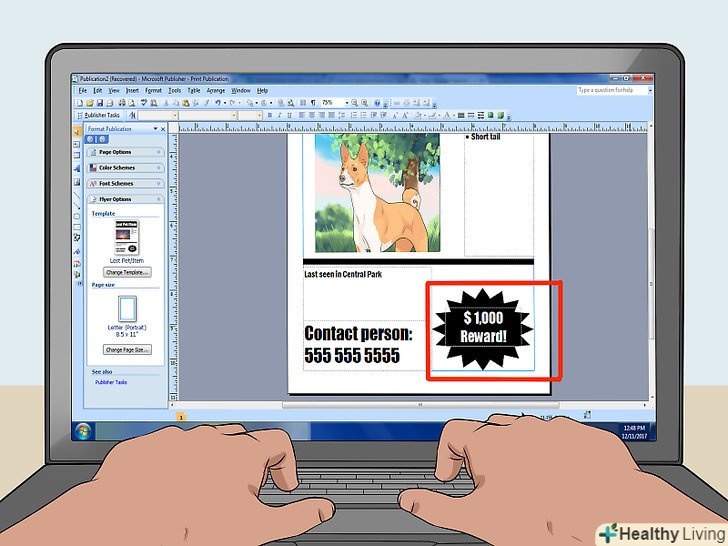 Переконайтеся, що ваш флаєр буде виконувати покладене на нього завдання. Перед випуском великого тиражу слід роздрукувати 1 екземпляр і повісити на двері. Відійдіть на відстань 3 метрів і погляньте на флаєр. Чи є щось, що зачепило вас? Дивлячись на зразок, Ви повинні відразу зрозуміти, що мова йде про загубилася собаці.- Відкоригуйте флаєр з метою більш точної передачі інформації, перевірте граматику і орфографію. [6]