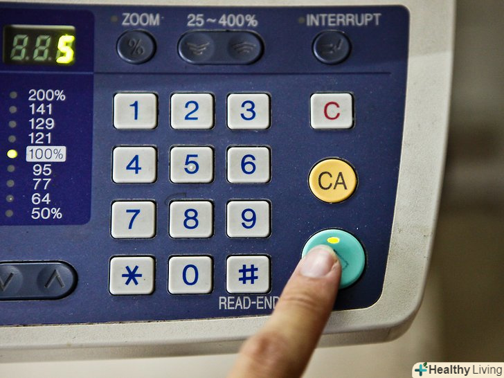 Натисніть велику кнопку «Копіювання», зазвичай вона зеленого кольору. якщо щось піде не так, як правило, є червона кнопка, щоб зупинити процес копіювання, але це займе деякий час, поки машина зупиниться. Якщо вам потрібна додаткова інформація, то з'явитися повідомлення про помилку. Якщо папір застряг, машина виділить цю ділянку і, ймовірно, дасть вам інструкції щодо усунення цієї проблеми.