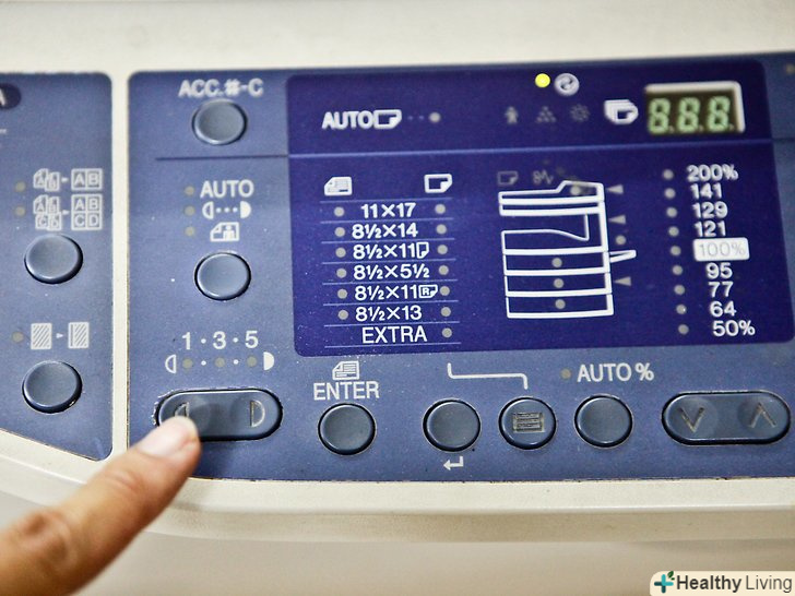 - Деякі копіювальні машини мають «режим книги», або можуть робити фотокопії декількох зображень на одному аркуші. Перевірте можливі варіанти зменшення або збільшення розміру при необхідності.