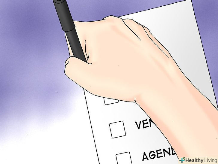 - Виберіть місце, яке зможе вмістити всіх учасників. Переконайтеся, що зал досить великий, щоб забезпечити комфорт для кожного. Якщо у вас є учасники або інші присутні з особливими потребами (наприклад, потрібні широкі дверні проходи і з'їзди для колясок), перевірте, що місце проведення відповідає цим вимогам, перш ніж резервувати його. [2]