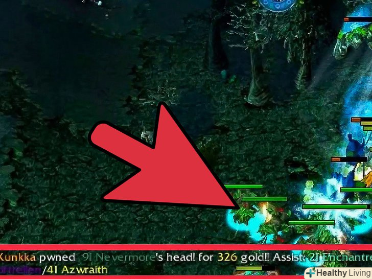 Купуйте за порадою.якщо у вас накопичилося багато золота, запитайте команду, що б такого купити. Правильний вибір предметів допоможе вижити і перемогти, так що не купуйте предмети наосліп.- Різним умовам-різні предмети. Наприклад, якщо вас або ваших напарників постійно вбиває герой, якого не можна вбити один на один, зберіть предмет типу "Orchid", "Cyclon" або "Hex" (їх називають дизейблерами). Так ви зможете виграти трохи часу, за яке ваші напарники зможуть встигнути прийти до вас на допомогу і вбити противника.