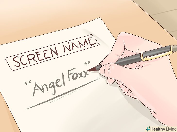 Придумайте сценічний псевдонім для своєї порноперсони. хоча не існує закону, згідно з яким ви не можете використовувати своє справжнє ім'я, як правило, з псевдонімом легше зберегти свою кар'єру в таємниці. Ви можете вибрати цілком нормальне ім'я або ж щось абсурдне. Головне, щоб воно було максимально простим.- Просте і запам'ятовується ім'я ви можете вибрати зі списку найпоширеніших імен. Знайти такий список можна в Інтернеті.
