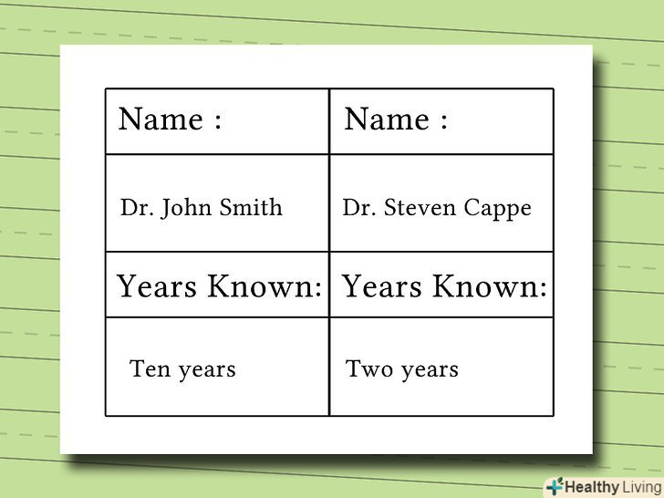 Помістіть інформацію в 2-3 колонках. створення таблиці дасть можливість вказати максимальну кількість інформації в таблиці і спростити її прочитання.- Сприймайте список рекомендацій як можливість надати інформацію для поліпшення шансів отримати роботу. Якщо ви поясните характер відносин з референтом в окремій колонці, у вас буде перевага над іншими претендентами, які вказали тільки ім'я та адресу.