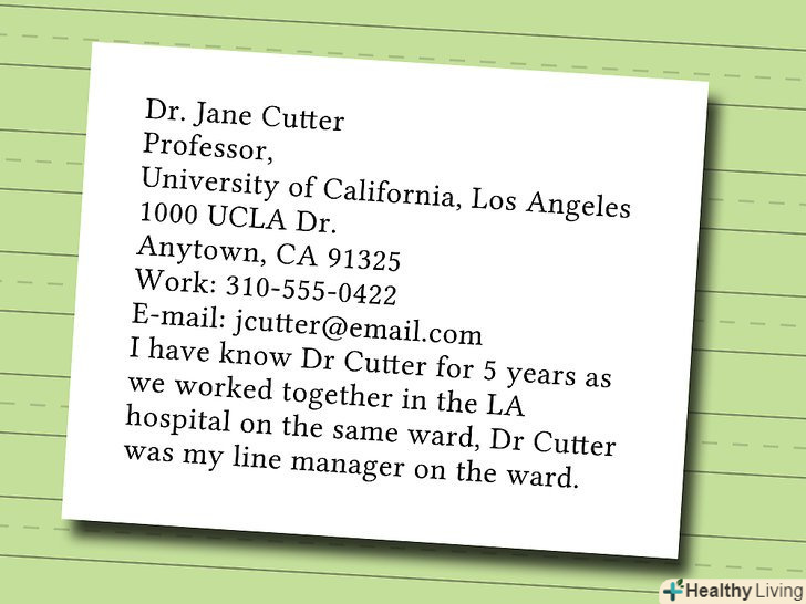 - Надайте телефонний номер та адресу електронної пошти. Запитайте у рекомендатора, який номер телефону або адресу електронної пошти краще використовувати для зв'язку. Найкраще уникнути вказівки персональних адрес електронної пошти, які виглядають непрофесійно.