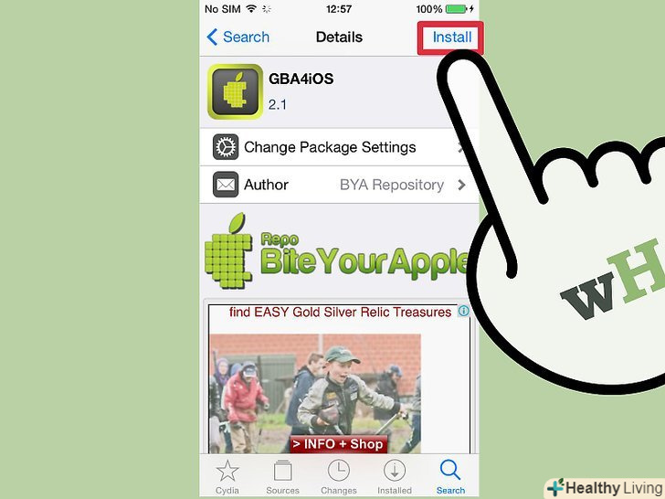 Знайдіть GBA4iOS. GBA4iOS входить до сховища Cydia, тобто ви можете завантажити GBA4iOS за допомогою Cydia. Пошукайте GBA4iOS і клацніть по ньому в результатах пошуку.- Якщо ви хочете грати у версії Pokemon для Nintendo DS (Diamond, Pearl, Platinum, HG SS, Black, White, B2, W2), вам буде потрібно емулятор NDS4iOS, який можна встановити аналогічним способом.