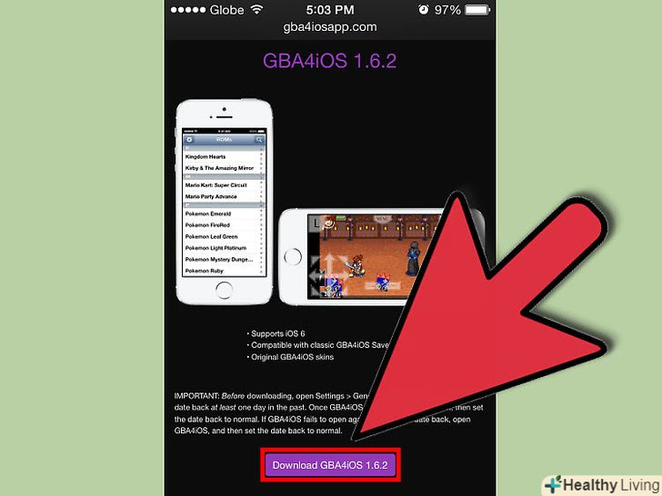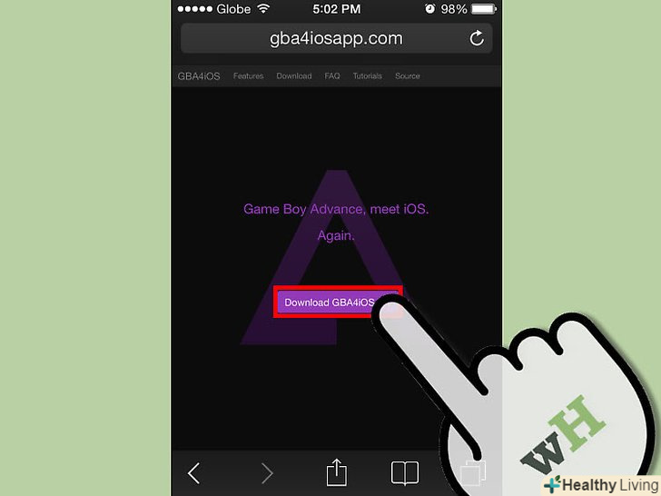 Натисніть на посилання для скачування.якщо ви використовуєте iOS 7 або 8, Натисніть «завантажити GBA4iOS 2.0.X». Якщо ви використовуєте iOS 6, Натисніть "завантажити GBA4iOS 1.6.2".