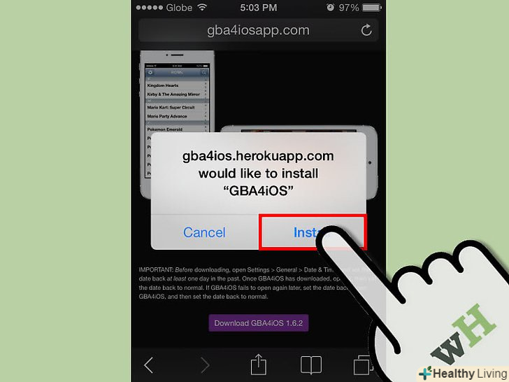 У браузері відкрийте веб-сайт GBA4iOS: gba4iosapp.com.- Якщо ви хочете грати у версії Pokemon для Nintendo DS (Diamond, Pearl, Platinum, HG SS, Black, White, B2, W2), вам буде потрібно емулятор NDS4iOS, який можна завантажити з сайтуiEmulators.com. у цьому випадку також змініть дату.