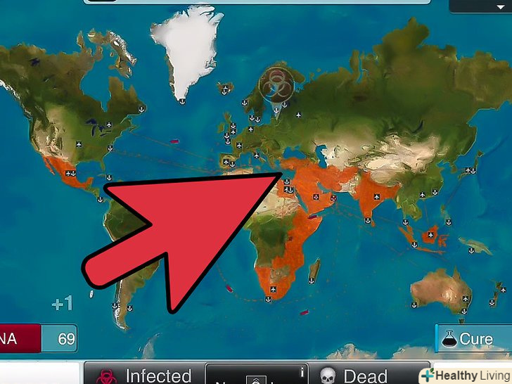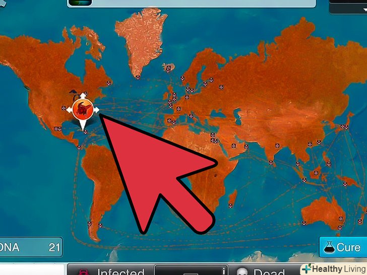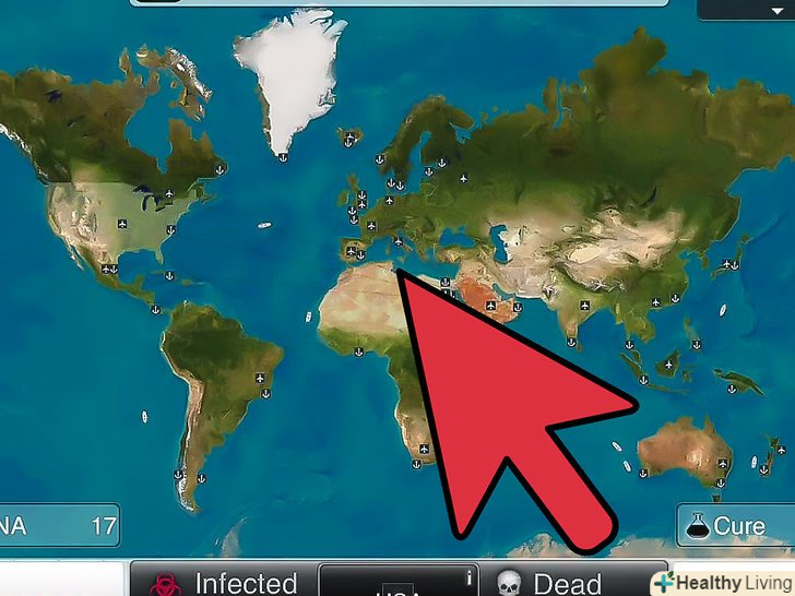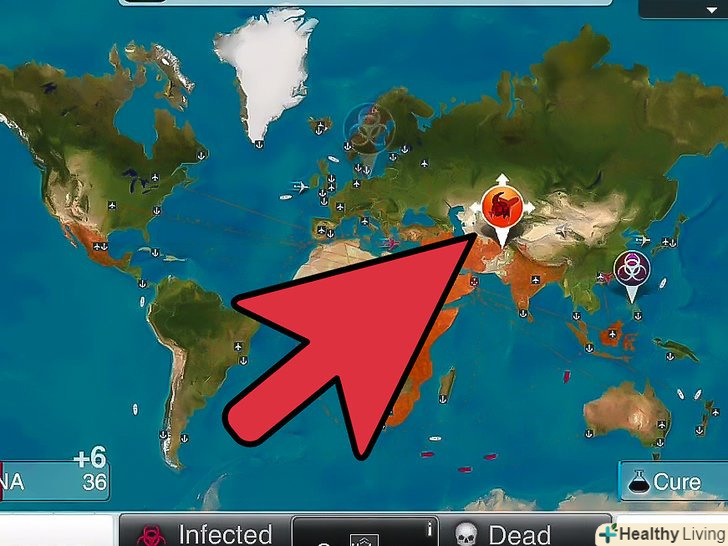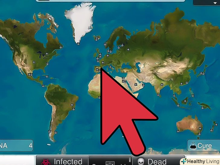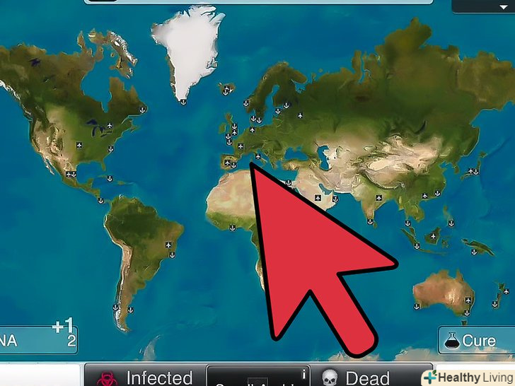 Виберіть стартову країну. це вкрай важливо, вам потрібна та, де погано з системою охорони здоров'я, щоб хвороба могла розвинутися швидко і ефективно.- Вибір багатої країни відкладе основне отримання очок ДНК, що може вплинути на результат гри.
