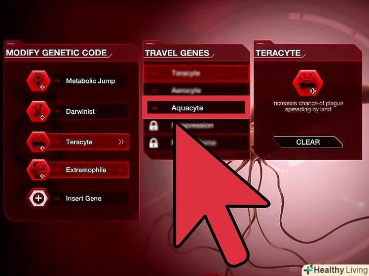 Вивчіть Genetic Swap.отже, ліки готується, але всі країни вже заражені вашим Neurax Worm. Тепер вам треба зосередитися на тому, щоб у всіх країнах світу не залишилося жодної здорової людини.- Насамперед вивчіть Genetic Swap.
