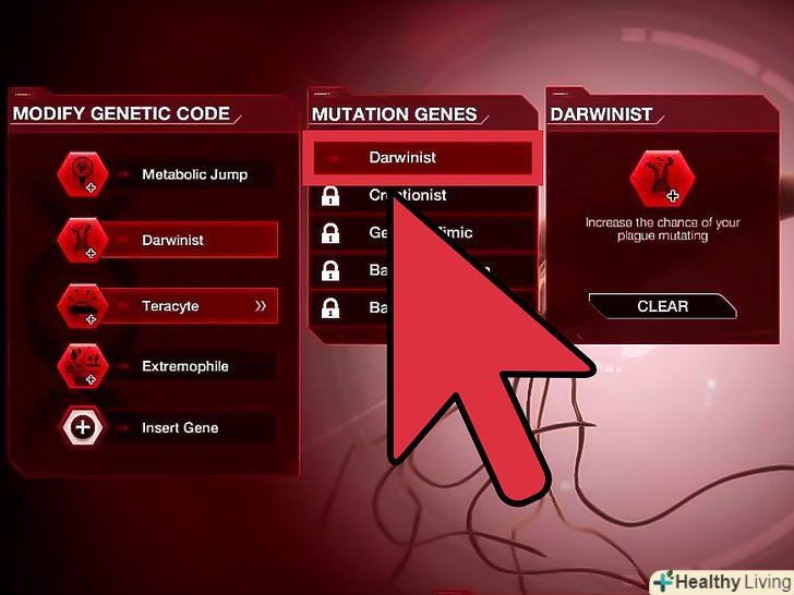Модифікація генів мутації.ці гени визначають, наскільки часто мутує ваша хвороба. Шанс мутації можна як збільшити, так і знизити. В даному випадку вам потрібно вибрати Darwinist.- Це збільшить шанси на мутацію, що буде корисно, так як пізніше ви зосередитеся на поширенні ареалу зараження.