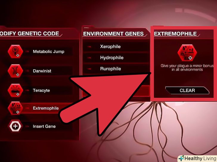 Модифікація генів навколишнього середовища.тут ви можете вибрати гени, які вплинуть на те, як відчуває себе Neurax Worm в тому чи іншому кліматі або середовищі. В даному випадку ваш вибір-Extremophile, так як він дасть хвороби невеликий бонус у всіх середовищах.