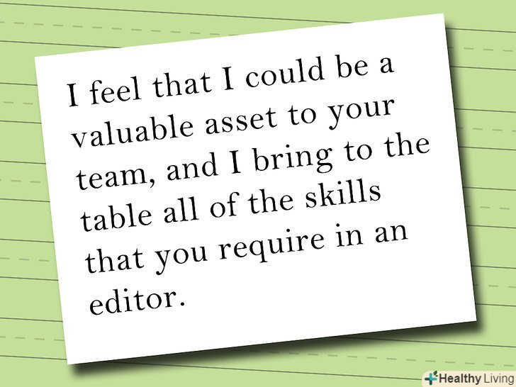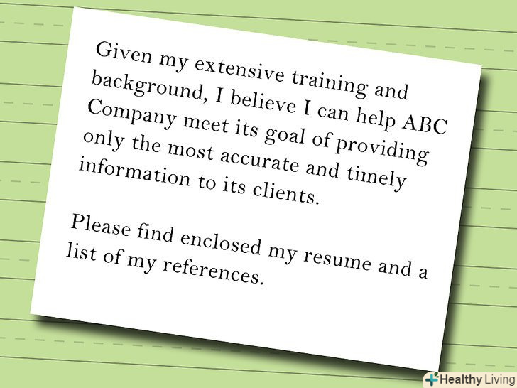 Напишіть заключну частину, в якій підкресліть ті переваги, які роблять вас ідеальним кандидатом, а також причини, за якими роботодавець виграє, взявши вас на роботу.