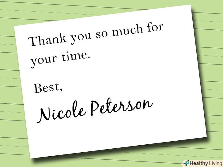 Підкресліть ваше бажання пройти співбесіду особисто або по телефону, а також ще раз Запропонуйте своє резюме на розгляд консультанту з кадрів або роботодавцю і подякуйте його за витрачений час.