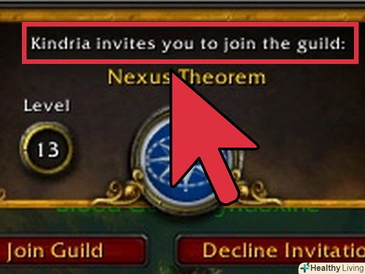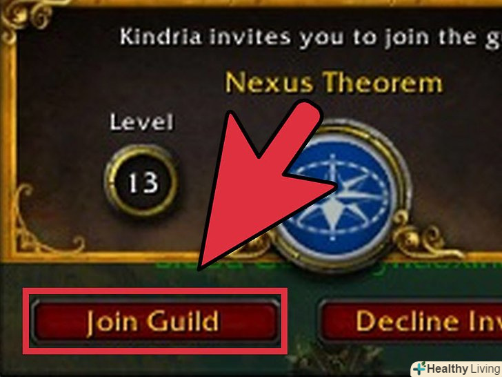 Прийміть запрошення.коли ви отримаєте запрошення вступити в гільдію, то на екрані з'явиться нове вікно з двома кнопками - погодитися або відмовитися. Крім того, буде написано назву гільдії і її рівень.