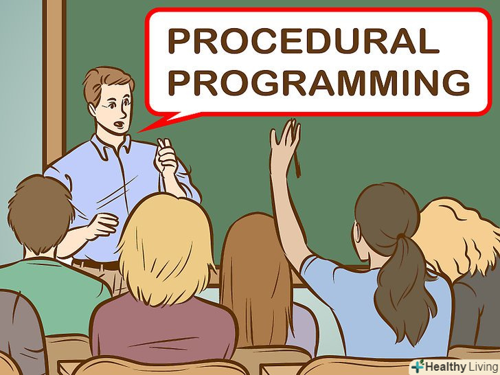 Запишись на вступний курс заПроцедурним мовам програмування . яку б мову ви не вибрали пізніше, вам потрібні будуть знання процедурного програмування. Крім того, багато фахівців вважають, що для того щоб зрозуміти програмування в цілому, слід почати з цього.