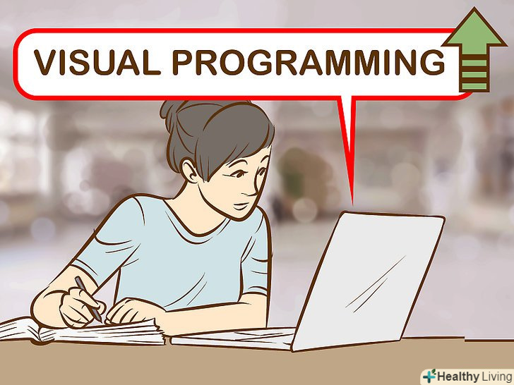 Вивчіть концепціїВізуального програмування за допомогою однієї з вибраних вами мов. практично у всіх мов програмування є версії або бібліотеки, які підтримують візуальне програмування та інші види консольного або консолеподобного програмування. Зробити це можна наступним чином:- Пройдіть вступний курс по подієво-керованому програмуванню. В основному візуальне програмування базується на подіях і обробці подій (за допомогою обраної мови програмування).