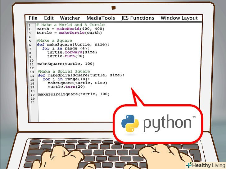 ВивчітьМова програмування базового рівня. не соромтеся вивчати те, що вважається дитячим, лише тому, що ви старше. Прикладом такої мови служить Scratch. Такі мови полегшать роботу з вашим першим справжнім мовою програмування. Проте, цей крок не можна вважати обов'язковим. Крім того, зайнятися цим можна і до попереднього кроку.
