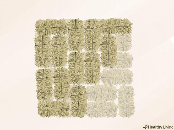 Повторіть цю модель укладання на другому ярусі, тільки розгорніть її в іншу сторону. покладіть кутовий тюк в довжину, потім викладіть ряд, шириною в два тюка, в ширину і т. д.