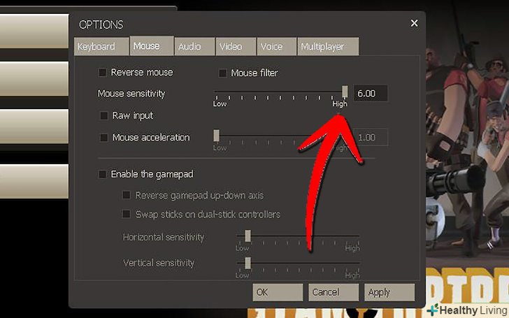 Використовуйте управління правильно.для руху вперед, назад і в сторони (стрейфа) треба використовувати клавіатуру. Для поворотів-миша, не клавіатуру. Можете налаштувати чутливість мишки, однак тут є свої моменти:- Чим вище чутливість миші, тим швидше ви будете повертати і реагувати. Проте, цілитися буде трохи складніше.