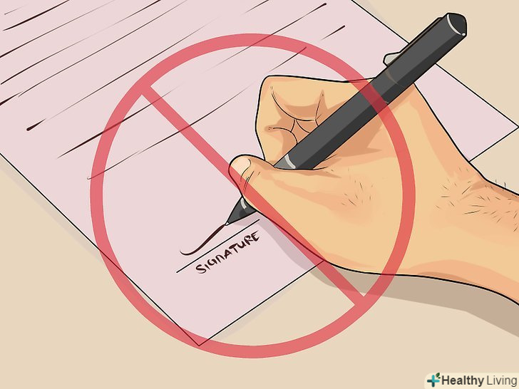 Не підписуйте вихідну допомогу ту ж годину. як тільки вам повідомлять новину, ваш начальник, швидше за все, протягне вам стос паперів з повідомленням про звільнення, які ви повинні підписати. Однак якщо це трапиться, не поспішайте ставити свій підпис. [3]- Зачекайте, щоб переглянути папери і, в ідеалі, проконсультуватися зі своїм адвокатом. Можливо, ви зможете сторгуватися на більш високій сумі вихідної допомоги, особливо якщо пропрацювали в компанії або організації тривалий період часу.