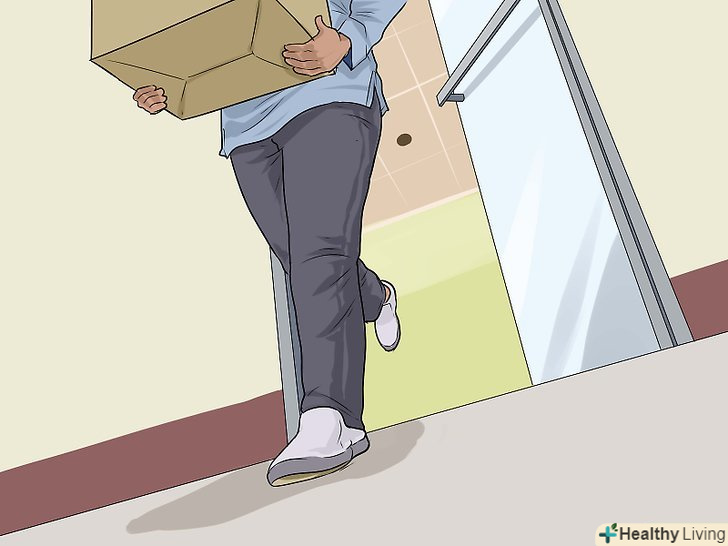 Упакуйте речі і покиньте будівлю. не потрібно тинятися по офісу і розповідати колегам про своє звільнення. Це виглядає непрофесійно і може викликати тертя між вами і вашим колишнім роботодавцем. Зберіть свої приналежності в картонну коробку або візьміть з собою тільки необхідне. Потім попрямуйте до найближчого виходу. [4]- Почекайте вечора, щоб зателефонувати колезі, з яким найбільш тісно спілкувалися, і попрощатися. Або запропонуйте зустрітися десь поза офісом.