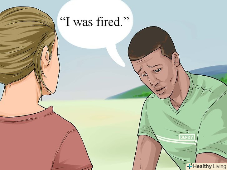Не бійтеся говорити людям про своє звільнення. спочатку усвідомлення цього може приносити біль, проте гучне "мене звільнили", сказане вголос собі і оточуючим, допоможе оговтатися від отриманої травми. Позбавтеся від негативних емоцій, викликаних звільненням, відкрито зізнавшись в цьому собі і оточуючим.- Чесно відповідайте, якщо потенційний наймач запитає, як ви пішли зі старої роботи. Поясніть певні деталі щодо причин вашого звільнення, але зробіть акцент на тому, що ви покинули компанію, зберігши хороші відносини. Це покаже потенційному роботодавцю, що ви хочете вести чесну і відриту політику, при цьому залишаючись професіоналом.