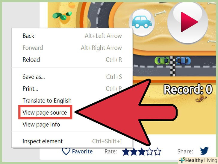 Відвідайте веб-сайт обраної гри. клацніть правою кнопкою миші на сторінці для перегляду джерела (view source), а при роботі на маке (Mac) клікніть кнопку "Перегляд" (view), а потім "перегляд джерела" в меню, що з'явилося.