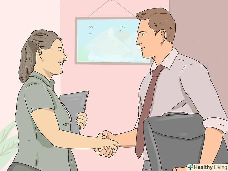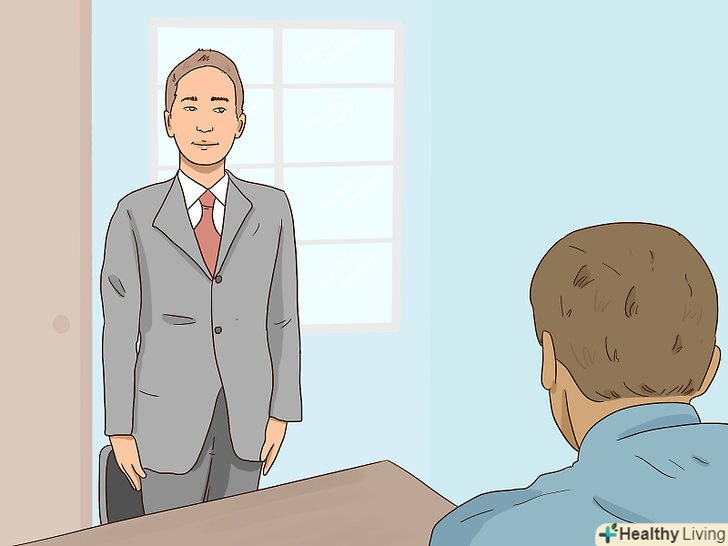 Поступіться ініціативу представнику компанії. не поводьтеся так, ніби ви тут головний. Для гарного враження необхідно віддати ініціативу в руки людині, яка проводить співбесіду. [17]- Не входьте в офіс і не сідайте до тих пір, поки вас не запросять.