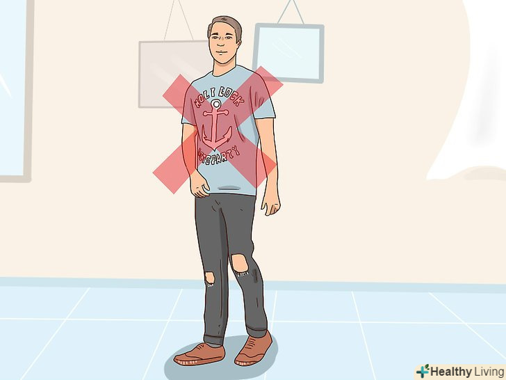 Акуратний і діловий зовнішній вигляд. навіть якщо в Компанії допускається неформальний одяг, не забудьте надіти чисті і випрасувані речі. Не надягайте на співбесіду джинси, футболку з малюнком, поношені або порвані речі. [3]- Необов'язково спеціально купувати новий одяг, але намагайтеся не виглядати так, ніби вам довелося надіти перше, що попалося під руку після прання.