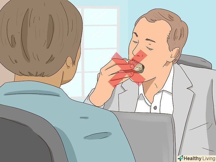 Намагайтеся не їсти і не пити під час співбесіди. До початку бесіди вам можуть запропонувати чашку кави або що-небудь перекусити. Під час інтерв'ю бажано нічого не їсти, навіть якщо співрозмовник вирішив підкріпитися. [19]- Стакан води буде доречним на випадок, якщо у вас пересохне в горлі. Також зробіть ковток, коли потрібно зібратися з думками.