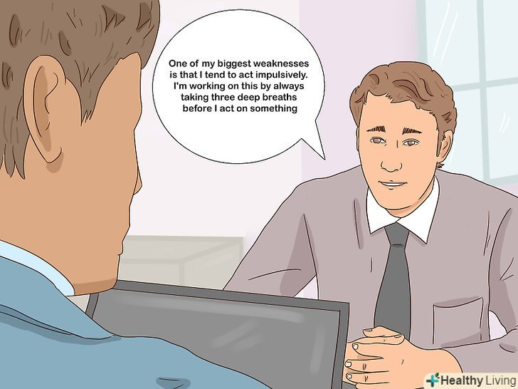 - У бесіді про недоліки говорите по суті і приводите конкретні приклади своїх спроб позбутися від проблеми. Наприклад, скажіть: "Один з моїх недоліків полягає в тому, що я схильна діяти імпульсивно, тому перед будь-яким рішенням я намагаюся зробити глибокий вдих і взяти себе в руки».