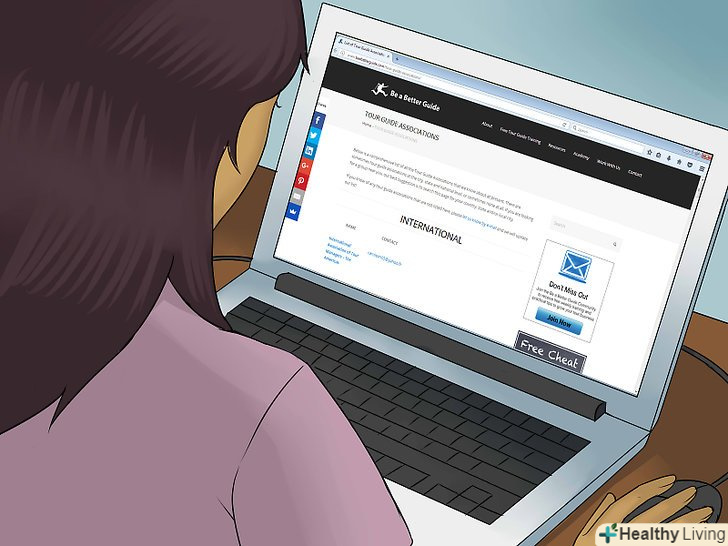 Перевірте сайти асоціацій екскурсоводів. у багатьох містах, країнах і регіонах є професійні організації гідів. Ці організації допомагають гідам просувати свою кар'єру і просувати саму роботу екскурсовода як позитивний аспект міжнародного туризму. Вони можуть допомогти вам знайти освітні можливості, а також вказати напрямок до роботи. [3]- Більш детальну інформацію, а також список даних асоціацій по всьому світу можна знайти на сайті http://www.beabetterguide.com/tour-guide-associations/ (англійською мовою). Також відвідайте ресурс http://www.agipe.ru/ .