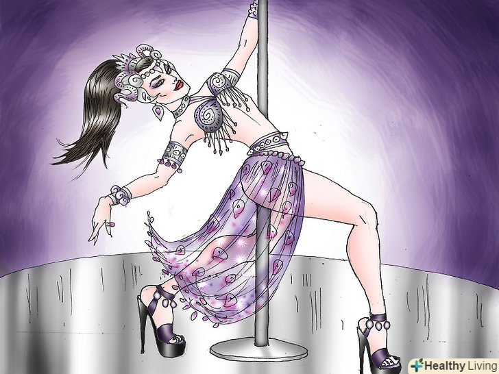Розгляньте пропозицію. вам знадобляться як мінімум10-тисантиметрові каблуки. Багато танцівниці починають з взуття на платформі з каблуком. Шпильки змусять виглядати ваші ноги тонше, вони можуть стати кращим варіантом при виборі взуття. Вам також знадобляться Джі-стрінги або стрінги з міцного матеріалу, вони можуть варіюватися в залежності від того, в якому штаті або в якому клубі ви працюєте. Інтернет-магазини, як правило, пропонують кращі варіанти, ніж місцеві магазинчики. Переконайтеся, що ви зробили депіляцію воском від шиї до самих п'ят; не потрібно нічого голити. Ніхто не хоче дивитися на стерню, а депіляція воском допоможе уникнути порізів в зоні бікіні. Якщо ви не можете витерпіти депіляцію воском або перебуваєте в проміжку між депіляціями, ви можете загримувати все те, що ви повинні добре вміти заховати.