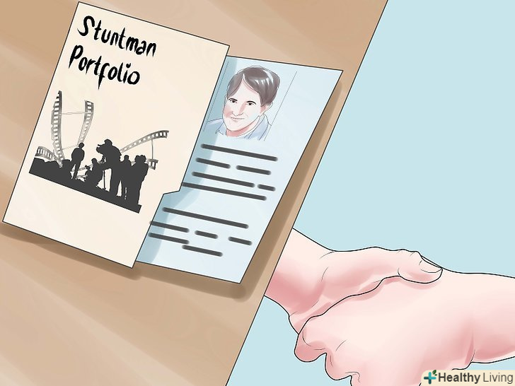 Зробіть фотографію. Якщо ви хочете, щоб вас сприймали всерйоз як професіонала, вам необхідно зробити чорно-білу фотографію крупним планом 20×25 див. Можливо, вам доведеться скористатися послугами професійного фотографа, або знайти надійного і талановитого фотографа серед друзів, у якого є професійний фотоапарат. Результат буде того вартий. Вас не сприймуть всерйоз, якщо ви вручите фото, зроблене за допомогою звичайного фотоапарата або дешевого Polaroid, так що серйозно підійдіть до цього. Завдяки хорошому знімку, ви будете виглядати як професіонал, до того ж, постановникам трюків буде простіше визначити, підходите ви їм по зовнішності чи ні. [6]- Ваш знімок – це як візитка каскадера. Якщо у вас його не буде, тоді як люди, з якими ви співпрацюєте, вас запам'ятають?