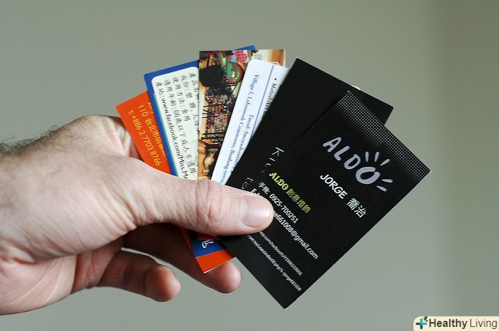 Розташуйте контактну інформацію своїх партнерів таким чином, щоб її потім можна було легко знайти. її можна розташувати в алфавітному порядку по першій букві прізвища людини або по першій букві назви компанії; по першій букві міста, де ви зустріли цю людину (якщо ви часто подорожуєте); або по галузі промисловості,в якій ця людина працює. Таким чином ви можете просто ввести в рядок пошуку ту інформацію про потрібну людину, яку Ви пам'ятаєте, і комп'ютер видасть вам список контактів, які задовольняють заданим параметрам пошуку.- Багато спеціальних комп'ютерних програм, метою яких є створення бази даних ваших контактів, можуть сортувати ваші контакти будь-яким бажаним для вас способом і зробити їх легко знаходити, якщо раптом ви пам'ятаєте тільки кілька ключових слів для пошуку. Якщо ви скористаєтеся однією з таких програм, то ви заощадите багато часу на ручному сортуванні візитних карток з даними.