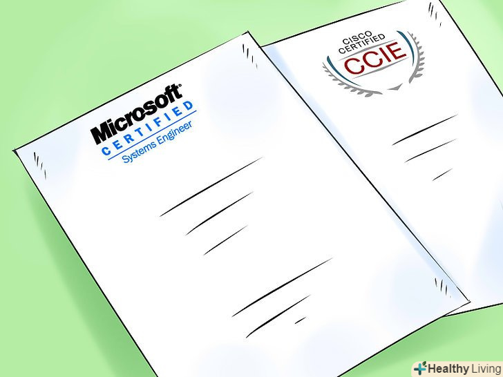 Вам необхідно отримати який-небудь професійний сертифікат, що підтверджує вашу кваліфікацію. це може бути сертифікат від Microsoft або Cisco. Багато компаній пропонують курси, по закінченню яких ви можете отримати сертифікат, що свідчить про вашу кваліфікації. Якщо ви хочете стати консультантом, вам необхідно мати досвід роботи з комп'ютерами та комп'ютерними мережами.- Також ви можете отримати такі сертифікати: консультант з безпеки інформаційних систем (CISSP), сертифікат етичного хакера (CEH), сертифікат ITIL, сертифікат менеджера з безпеки інформаційних систем (CISM), сертифікат SANS GIAC, сертифікат, що свідчить про прослуховування курсу безпеки інформаційних систем (CISA), сертифікат системного адміністратора (PMP), сертифікат спеціаліста з менеджменту (CBCP), сертифікат фахівця з безпеки (CPP) і сертифікат фахівця з безпеки та захисту даних (CIPP).