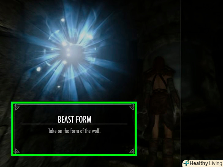 Використовуйте меню магії, щоб активувати вашу силу.ви можете перетворюватися на перевертня раз на день (якщо у вас немає Кільця Хірсіна), і ви будете зберігати форму звіра протягом 150 секунд. Поїдання трупів додасть вам ще 30 секунд. Виберіть перетворення з відповідного меню, воно активується схожим з Криками чином.