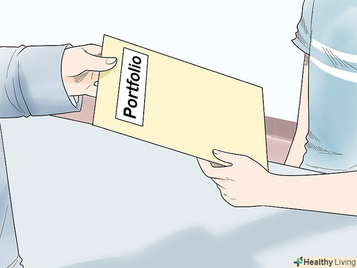 ПідготуйтеПортфоліо . Портфоліо дасть вам можливість пройти стажування і отримати роботу. Виберіть найкращі роботи, які демонструють різноманітність стилів, і відскануйте їх . Зберігайте ці файли на комп'ютері, щоб мати можливість швидко відправити їх потенційним клієнтам або роботодавцям або роздрукувати. [7]- Включіть в портфоліо різноманітні приклади (роботи в різних стилях і техніках), щоб продемонструвати, на що ви здатні.