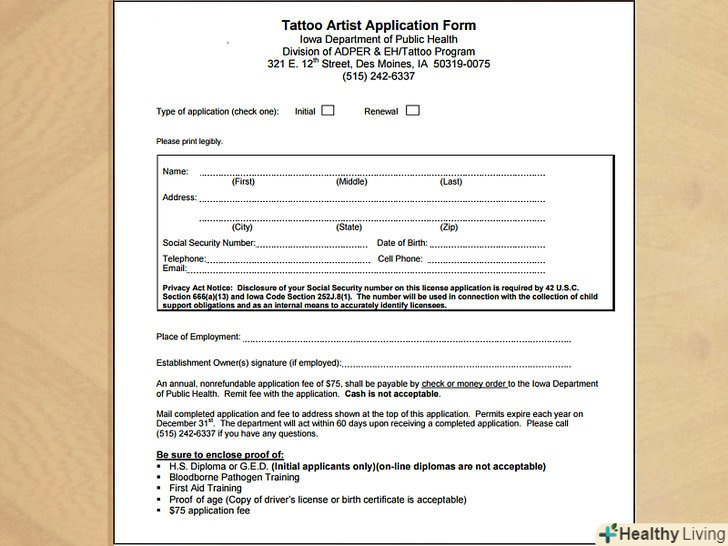 Знайте, що ви не повинні і не можете отримати ліцензію татуювальника. на даний момент в Росії для роботи тату-майстром ліцензія не потрібна, проте вона може бути введена в найближчому майбутньому.- У деяких країнах ліцензія потрібна. Дізнайтеся, чи потрібно отримувати спеціальний документ, якщо ви живете в іншій країні.