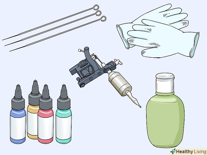 Купуйте необхідне обладнання, щоб почати працювати. у більшості салонів майстри повинні самі купувати інструменти і витратні матеріали. Замовте все необхідне в інтернеті або в спеціальному магазині товарів для татуювань. Вам буде потрібно: [9]- Тату-машинка