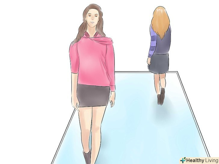 Практикуйтеся, щоб створити свою власну ходу на подіумі. зробіть її вашою «фірмовою фішкою». Загальноприйнятий стиль ходи-плечі назад і розслаблені, невелике виляння стегнами, ноги прямі, і одна нога стає перед іншою.- Пам'ятайте, не стрибати і не надто сильно виляти вашими стегнами.